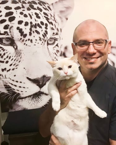 Santiago es un veterinario con más de veinte años de experiencia, especializado en la salud felina. Su carrera comenzó con un enfoque en la medicina de felinos en cautiverio y, posteriormente, se expandió hacia una comprensión profunda de los gatos domésticos y sus necesidades específicas en la práctica de pequeños animales. También posee un doctorado en fisiología reproductiva de jaguares, lo que aporta conocimientos valiosos para la conservación y el cuidado de estas especies tan notables.